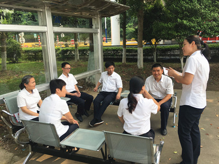 臨海南收費所自創環境進行業務學習 6月8日下午,臨海南收費所因辦公樓改造施工,組織員工在室外露天場地,分析、討論5月21至31日交叉稽查中發現的不規范操作業務,并確定整改措施,規范收費流程。