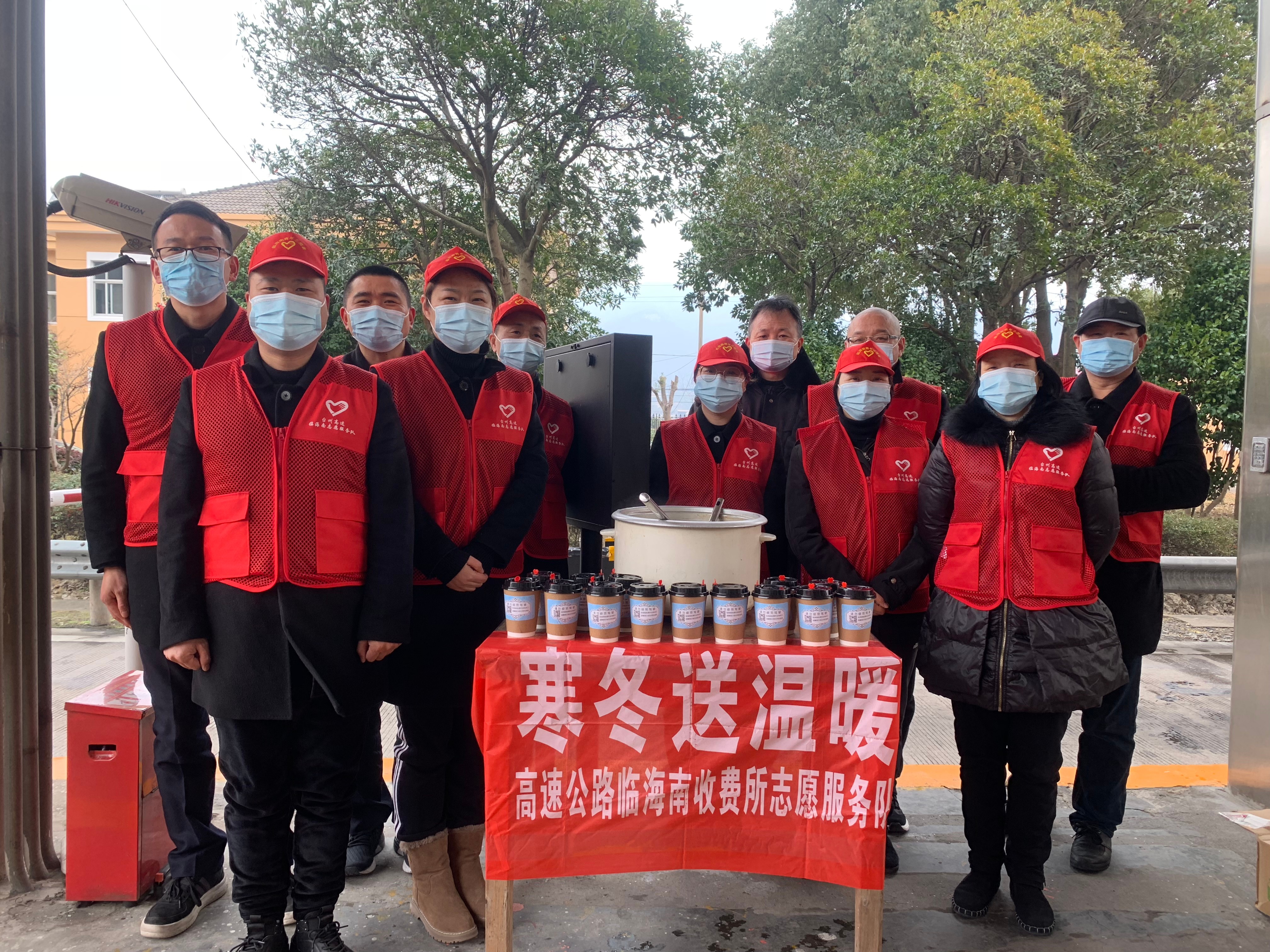 1月7日中午,臨海南收費所開展寒冬送溫暖志愿服務活動,為過往駕駛員捧上了一杯杯溫熱的紅糖紅棗姜茶,為他們送去了寒冬里的一縷溫暖。