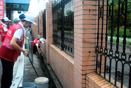 圖為員工對外廣場邊溝衛生進行清理