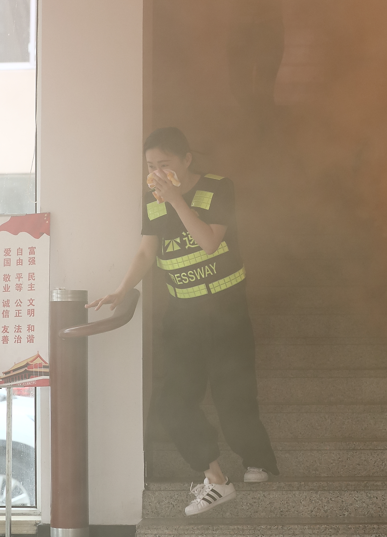 圖為火災(zāi)逃生演練現(xiàn)場(chǎng)