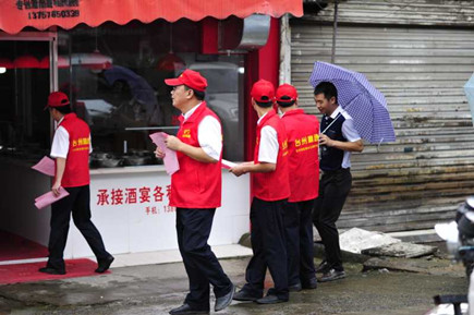 圖為志愿者隊(duì)合影 由部分非當(dāng)班黨員,青年團(tuán)員組成的第一支志愿小分隊(duì),趕赴沙埠鎮(zhèn),與沙埠鎮(zhèn)鎮(zhèn)政府一起開(kāi)展創(chuàng)建全國(guó)文明城市的宣傳活動(dòng)。小分隊(duì)統(tǒng)一身著印有的 “臺(tái)州高速臺(tái)州南收費(fèi)所志愿服務(wù)隊(duì)”的紅色馬甲,在沙埠鎮(zhèn)有關(guān)同志的陪同之下,冒雨沿街分發(fā)創(chuàng)建全國(guó)文明城市的宣傳資料,并逐一耐心講解創(chuàng)建工作的有關(guān)注意事項(xiàng)。 沙埠鎮(zhèn)沿街衛(wèi)生秩序較好,但局部角落還是存在一定的臟、亂問(wèn)題,通過(guò)鎮(zhèn)工作人員和志愿者們的勸導(dǎo),群眾們紛紛表示要響應(yīng)創(chuàng)建全國(guó)文明城市的號(hào)召,從自身做起,為創(chuàng)建出一份力。 王樹(shù)聲