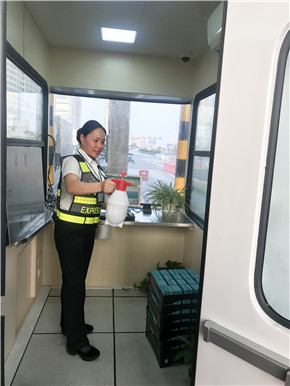 可如何有效除味又成了一個大問題,有員工提出用空氣清新劑,空氣清新劑一般是有香味,香臭相結合會更加讓人受不了……大伙兒左思右想還是沒有一個可以一直拍板的好辦法。這時所長楊瑩瑩想出來一個好法子——用白醋加水混合,每天堅持噴灑再加上開窗通風,既可以除去臭味,又方便實惠。這個建議得到了大家的一致贊同,于是立即分頭動,擼起袖子加油干,倒醋、配水,向新崗亭出發。也許這不是一時三刻就可以解決的問題,但是瞬間,每個人心里都感到一陣欣慰。