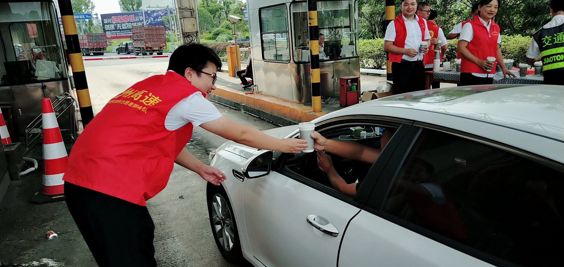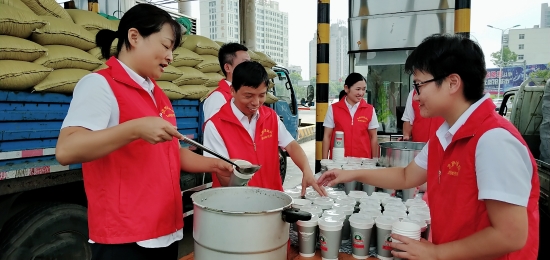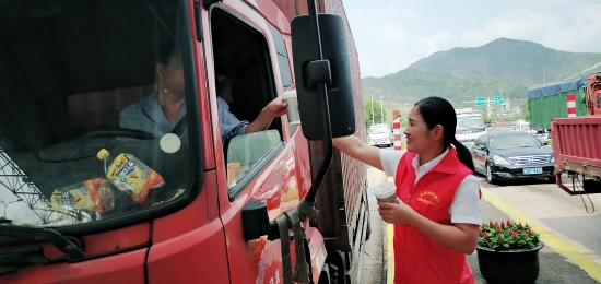 溫嶺西收費所、大溪嶺隧道所黨員帶頭,團員響應,大家主動放棄休息時間,組成志愿服務隊,頂高溫在高速出口為過往司乘免費提供綠豆湯、紅棗湯等飲品,同時還備足藿香正氣水、風油精等解暑藥品讓廣大司乘在炎炎夏日感受到一絲清涼。當司乘人員從志愿者手中接過一杯杯綠豆湯時,志愿者還不忘提醒司乘高溫酷暑天氣注意行車安全。面對“春風”般微笑的志愿者,喝著綠豆湯的司乘人員都露出了開心的笑容,紛紛豎起大拇指感謝志愿者們的貼心服務。