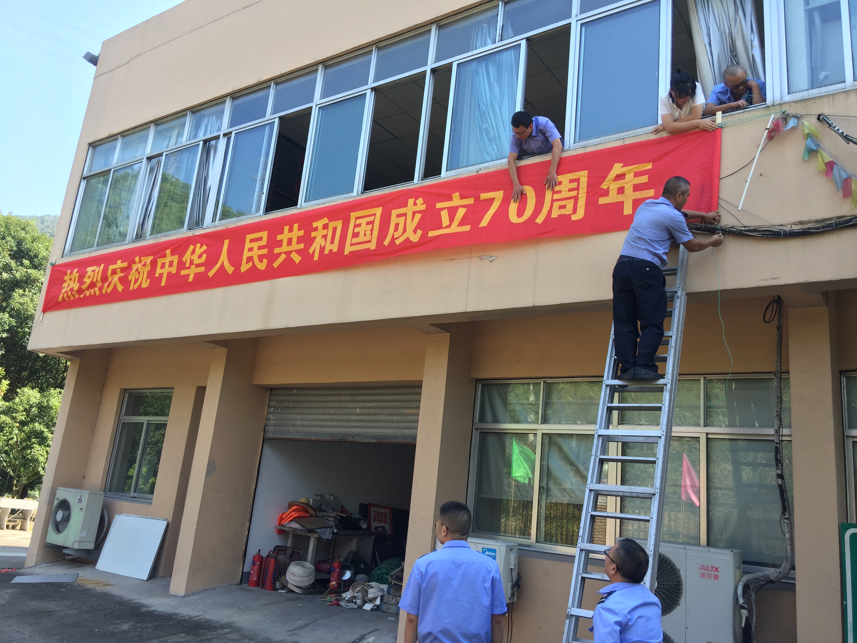 圖為插好的彩旗現場 連日來,在所負責人的帶領下,工作人員分工明確、團結協作,安裝旗桿、插彩旗、掛橫幅……整個布置工作有條不紊地進行。經過幾天的“梳妝打扮”,管理所入口兩側綠化帶上插滿了靚麗鮮艷的各色彩旗,辦公樓門口懸掛了大紅燈籠,外墻上懸掛著“熱烈慶祝中華人民共和國成立70周年”“歡度國慶”橫幅。在嶄新的國旗、紅色橫幅、大紅燈籠等一系列喜慶紅色氛圍的襯托下,管理所處處洋溢著歡樂的節日氣氛,全體員工也滿懷喜悅的心情,為迎接祖國70周年華誕的到來全力做好各項工作。 通過節日氛圍的營造,全體員工切身感受到祖國的偉大富強,增強民族自豪感,激發出廣大司乘人員不忘初心、牢記使命的愛國主義熱情。 林玲