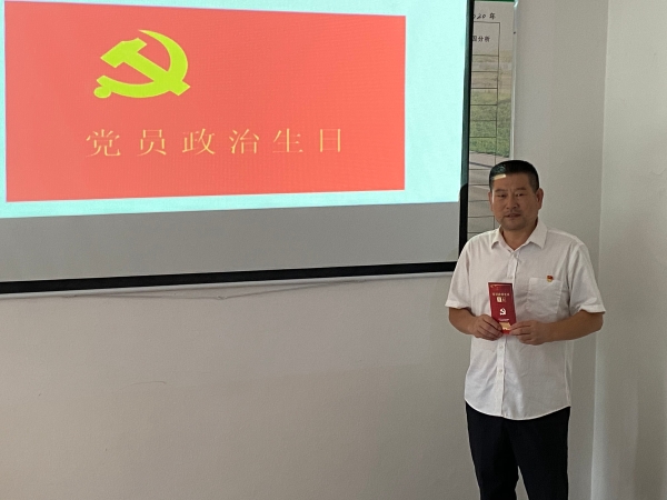 會議現(xiàn)場,黨支部書記李海福向李學(xué)來贈送“政治生日”賀卡,并送上“政治生日”祝福,讓李學(xué)來感受到來自黨組織的關(guān)懷。