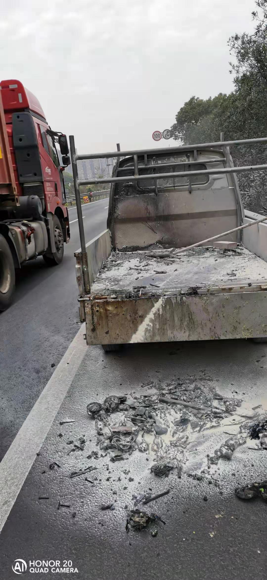 310日清晨746分,一輛五菱小貨車裝載物莫名起火驟停在黃土嶺隧道溫向出洞口100米左右的硬路肩,情況十分危急。