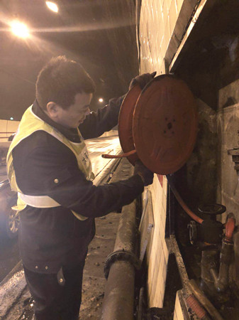 圖為檢查人員在檢查消防卷盤 大溪嶺隧道所負(fù)責(zé)人向來(lái)客介紹,隧道清洗工作需集團(tuán)下屬的施救中心、維養(yǎng)中心、隧道所員工,以及外協(xié)單位、養(yǎng)護(hù)公司等人員的積極配合,分工合作,將利用兩天時(shí)間完成大溪嶺雙向隧道的清洗維修任務(wù)。張金財(cái)再次稱贊表示,控制隧道清洗時(shí)間能有效地緩解地方交通壓力、節(jié)能減排。 2018年度春運(yùn)即將開(kāi)始,各方檢查人員借此次隧道清洗機(jī)會(huì),全面排查影響隧道暢通的安全隱患,做好隧道內(nèi)設(shè)備設(shè)施的維修保養(yǎng)工作,為創(chuàng)造平安節(jié)日提供保障。 陳智慧