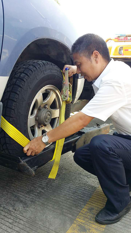 綁帶雖小,卻是安全拖曳環節上的重要一環,一旦捆綁不牢,車輛滑落,極易造成安全事故。施救中心抽一切可利用時間,抓一切安全隱患細節,讓每一個在崗員工進行了輪胎捆綁練習,力求每一個員工準確掌握各種綁帶使用技能,特別是三種標準的輪胎捆綁方式,更是要求他們熟練掌握,并應用到實際工作中,嚴禁不綁、隨便綁、胡亂綁。