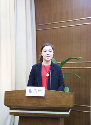 圖為公司財務總監章彩霞在宣讀議案