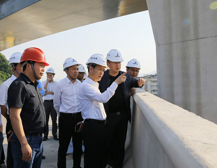 圖為副市長張加波在8#立交橋上聽取工作匯報