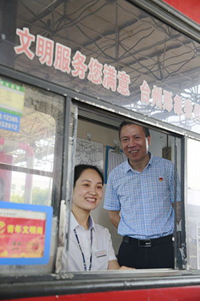 “今天車流量多嗎?你們是公司形象的代表,請把最優(yōu)質(zhì)的服務(wù)提供給他們。”在臺州收費所一號崗?fù)だ铮瑥埥ㄆ揭贿呂繂柈敯嗍召M員,囑咐他們注意安全和休息,一邊鼓勵他們堅持做好文明服務(wù)。他還到黃土嶺隧道所、臨海南收費所慰問當班執(zhí)勤隊員和收費員。此時,各所食堂管理房正處于改造階段,他仔細查看了各所食堂和工作場所,了解大家的飲食和工作環(huán)境。