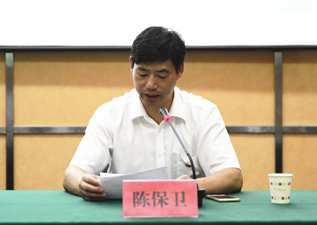 圖為公司副總經(jīng)理陳保衛(wèi)主持會(huì)議