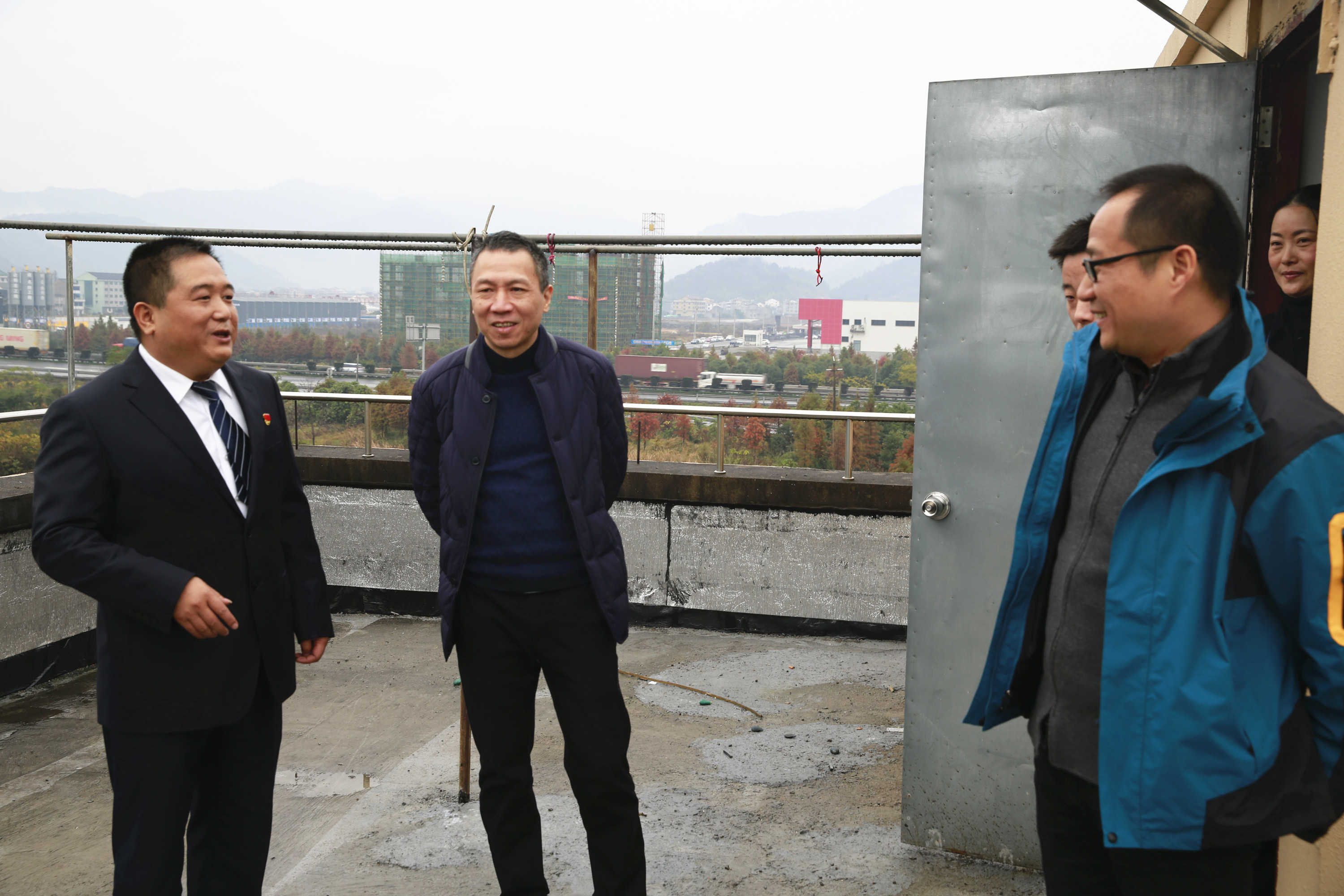 圖為集團副董事長、總經理張建平檢查臺州南收費所陽光房
