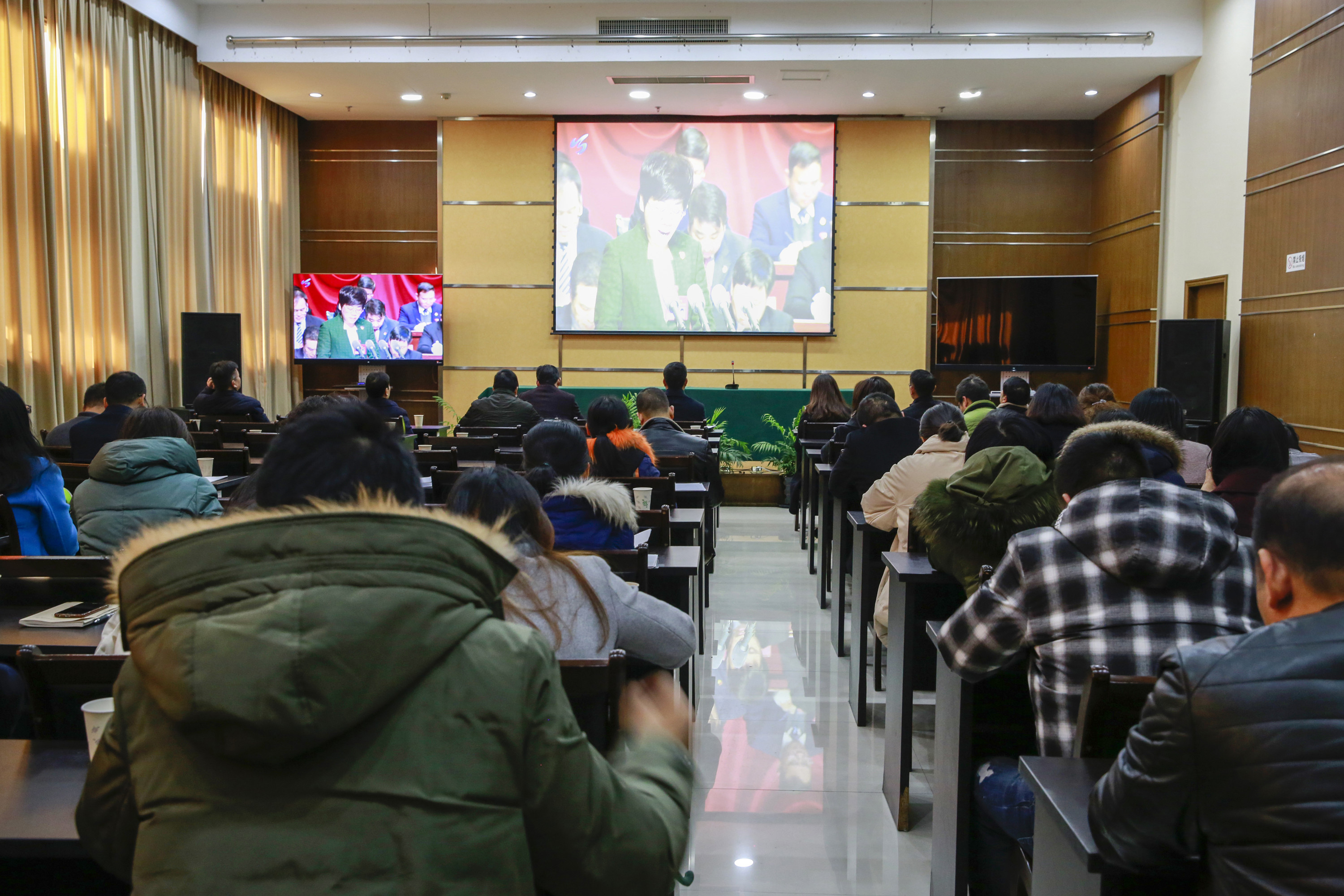 圖為參加收看大會(huì)的領(lǐng)導(dǎo)干部和職工