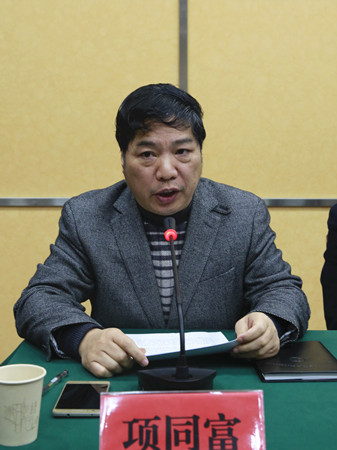 圖為公司安全總監項同富總結2017年綜治安全生產工作和部署2018年安全生產工作