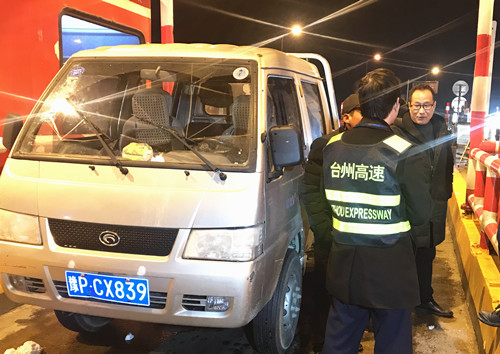 圖為公司副總經(jīng)理章海峰在臺州南收費站向拒付通行費人員解釋相關政策
