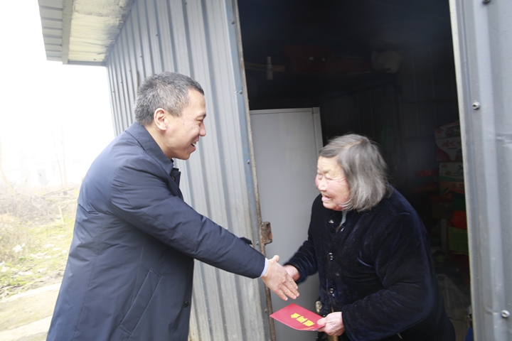 圖為集團總經理張建平走訪慰問老人鮑于朝