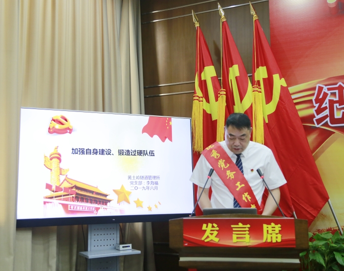 圖為黃土嶺隧道所黨支部李海福發言