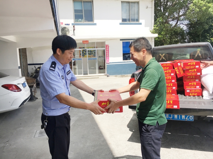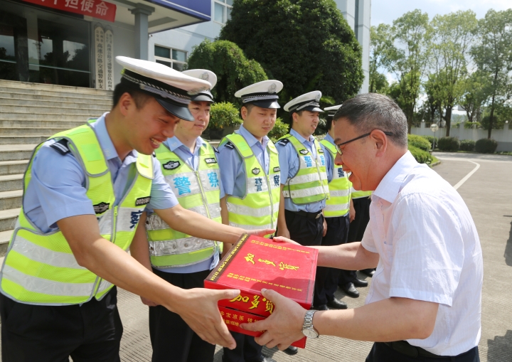 與此同時(shí),集團(tuán)總工程師江輝帶領(lǐng)工程部及收費(fèi)所相關(guān)人員到院橋派出所和交警隊(duì)開展“送清涼”活動(dòng)。江輝代表臺(tái)州高速集團(tuán)對(duì)當(dāng)?shù)嘏沙鏊徒痪?duì)的履職盡責(zé)、通力協(xié)作表示衷心感謝,并叮囑他們?cè)诟邷靥鞖庖龊梅朗罱禍毓ぷ鳌?/span>