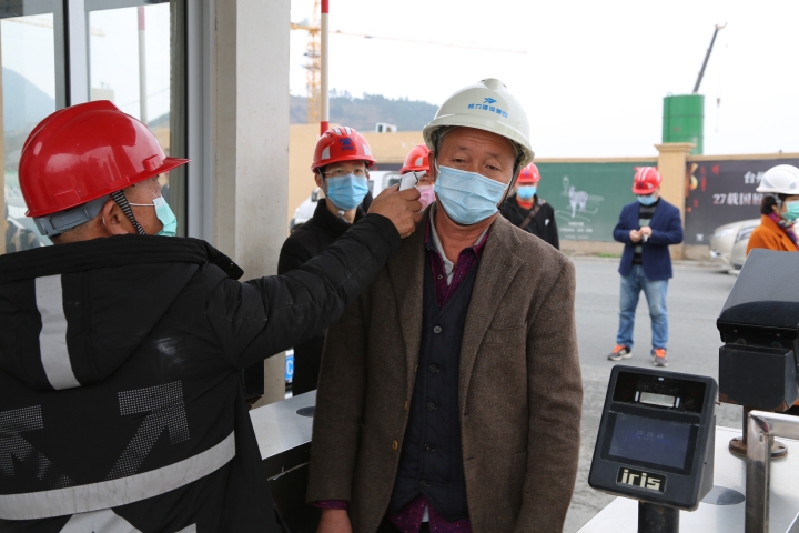 “這是我的綠碼。”臺州高速集團黨委書記、董事長、總經理陳文波主動向黃巖玖璽逸墅項目施工工地的防疫人員出示自己的綠碼。經過測體溫、登記、檢查綠碼、消毒等防疫流程,陳文波一行進入施工工地。