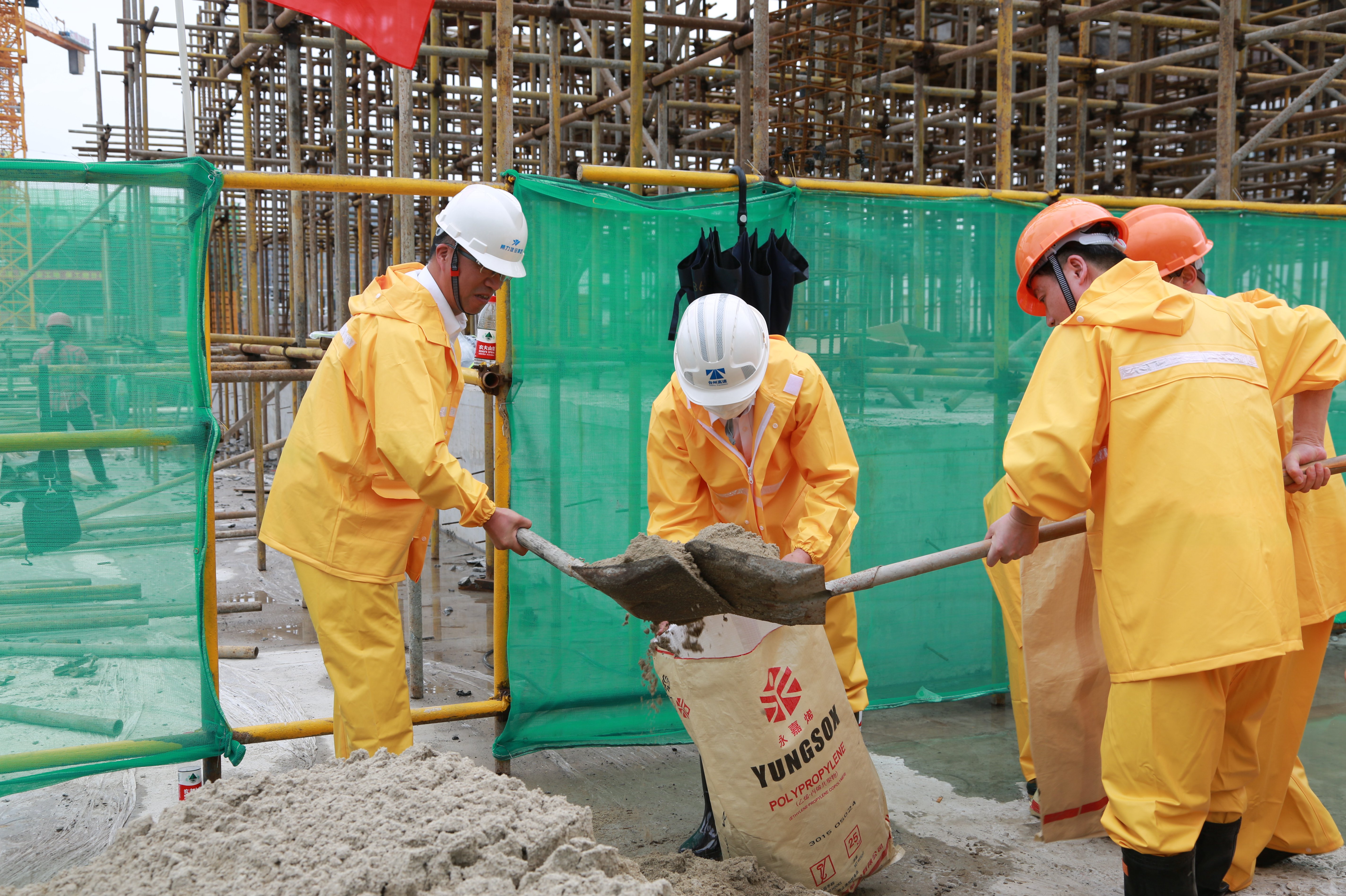 “第一組演練人員,準(zhǔn)備……”隨著集團(tuán)安全總監(jiān)項(xiàng)同富一聲令下,應(yīng)急演練的第一個(gè)科目沙包圍堰防洪開始,應(yīng)急搶險(xiǎn)小組人員和房產(chǎn)施工單位代表隊(duì)聽到指令后立刻趕到用沙包圍成的兩個(gè)大水池附近。