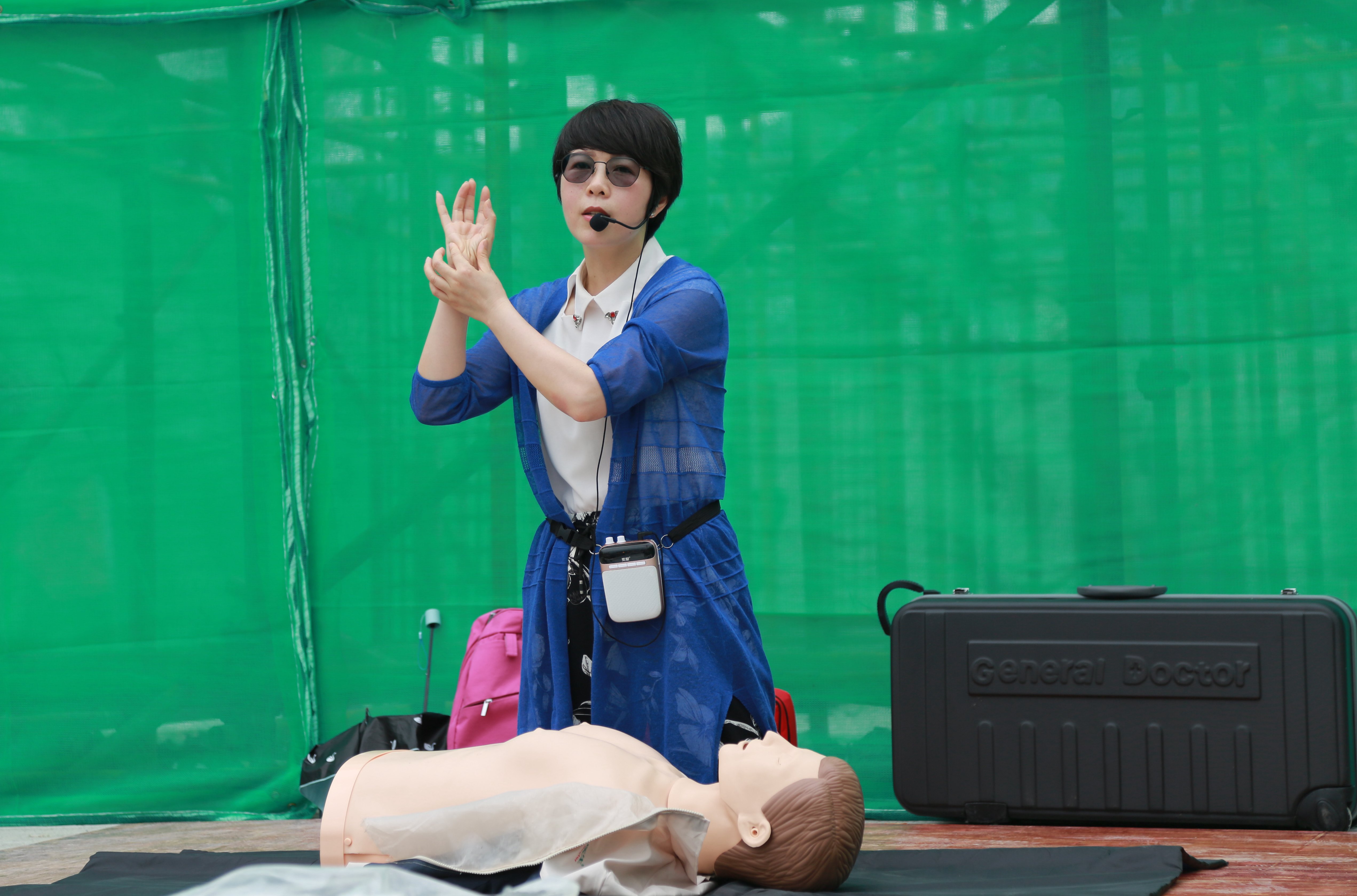 隨后,臺(tái)州職業(yè)技術(shù)學(xué)院副教授李美芬到場(chǎng)為大家開展心肺復(fù)蘇急救知識(shí)培訓(xùn)。李美芬在現(xiàn)場(chǎng)結(jié)合模型詳細(xì)為大家講解心肺復(fù)蘇急救時(shí)的注意事項(xiàng)、操作方法、步驟流程等,并作了專業(yè)的示范。現(xiàn)場(chǎng)人員踴躍上臺(tái)實(shí)踐學(xué)習(xí),李美芬一一在旁邊作技術(shù)指導(dǎo),強(qiáng)化了大家的學(xué)習(xí)效果。