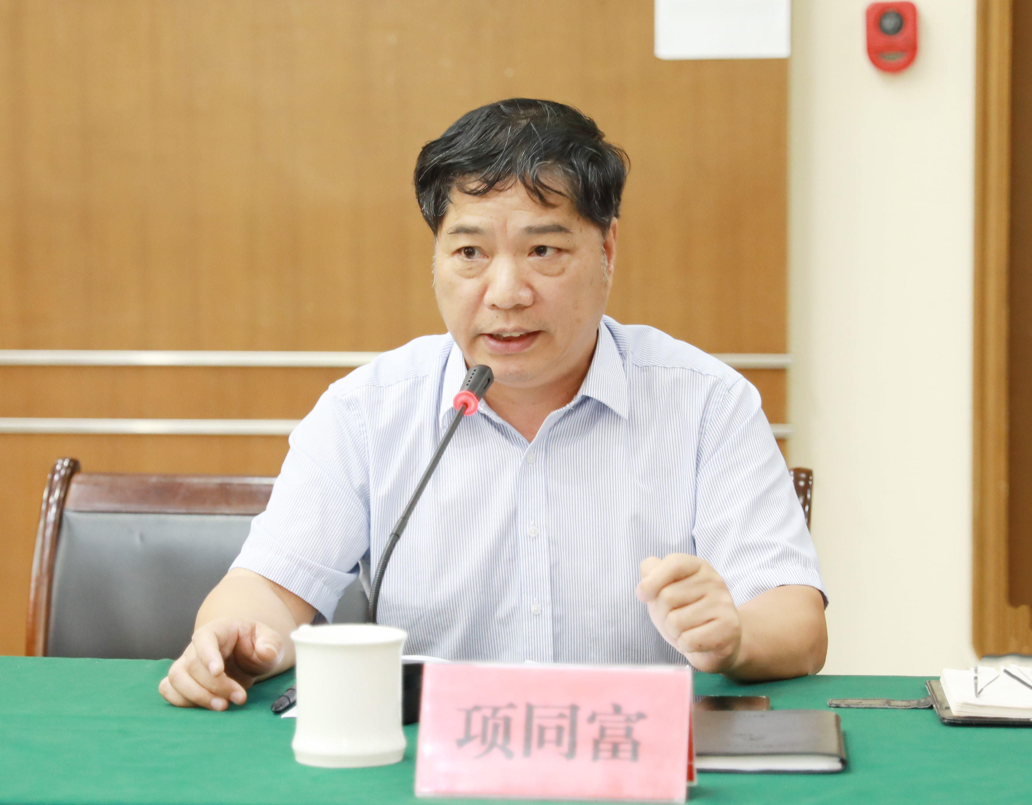 圖為公司工會主席、安全總監項同富,對安保部和工會相關工作作點評