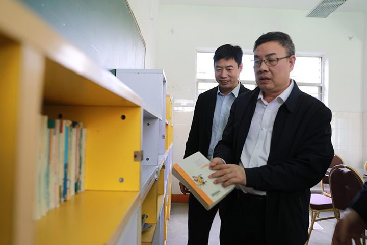 圖為陳文波和陳保衛參觀學校閱讀室 通過此次走訪,臺州高速集團與仙居縣上張鄉中心學校達成了初步意向,確定了每年10個助學名額,后續雙方將在相關幫助細節上做好進一步對接,努力將此次活動開展好,為孩子們的成長貢獻一份力量。 馮曉潔