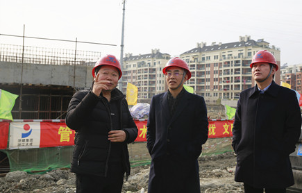 圖為董事長(zhǎng)謝文君督查內(nèi)環(huán)北路(江口段)工地