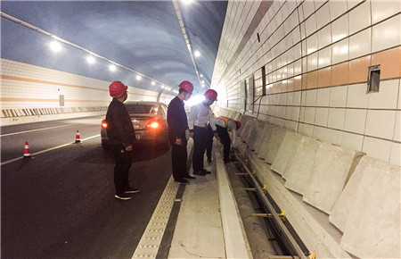 圖為市政公司與安保部聯(lián)合檢查2號(hào)隧道機(jī)電監(jiān)控工程現(xiàn)場(chǎng)