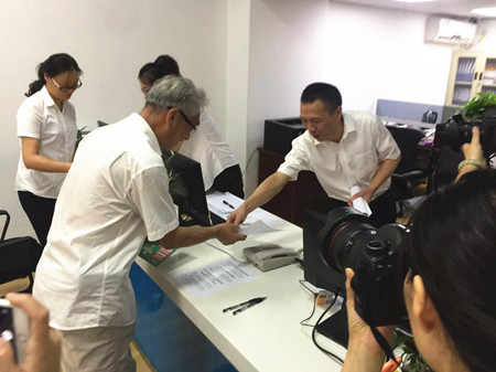 圖為集團副董事長、總經理張建平在椒江收購點為股東服務