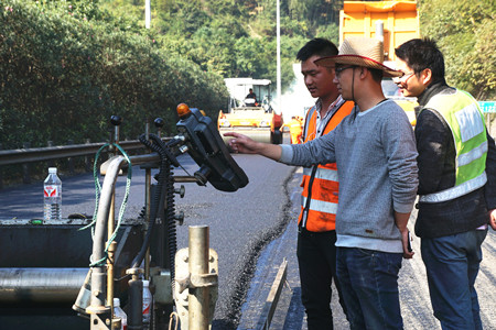 “路面銑刨有時會出現銑刨不完全存在夾層的現象,如不清理干凈則會嚴重影響攤鋪后路面的平整度。”楊金梁介紹道,所以攤鋪時每道工序,他都時刻緊盯,確保攤鋪的路面不存在任何瑕疵。