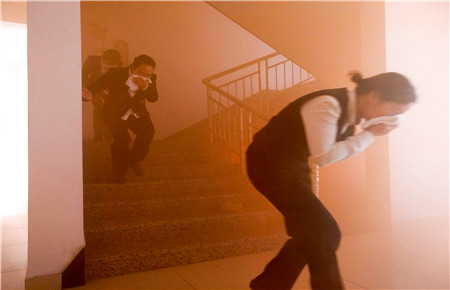 該演練模擬了生活樓發(fā)生火災(zāi),員工一發(fā)現(xiàn)火情就立即撥打了報(bào)警電話。參加演練人員聽(tīng)到警報(bào)聲后,迅速拿起打濕的毛巾捂住口鼻,手扶墻體或樓梯扶手,俯身低姿從三樓或二樓,向安全通道有序撤離。全體人員不一會(huì)就疏散到了安全地帶,同時(shí)連接好消防水帶,迅速跑至火源附近,對(duì)準(zhǔn)火源有效滅火。