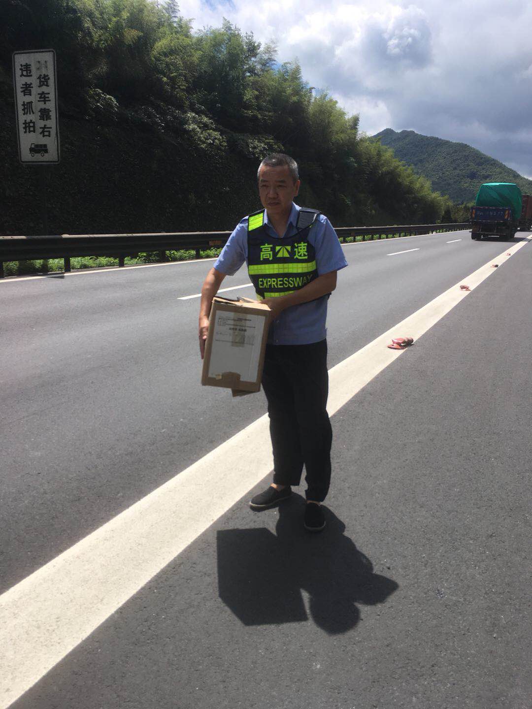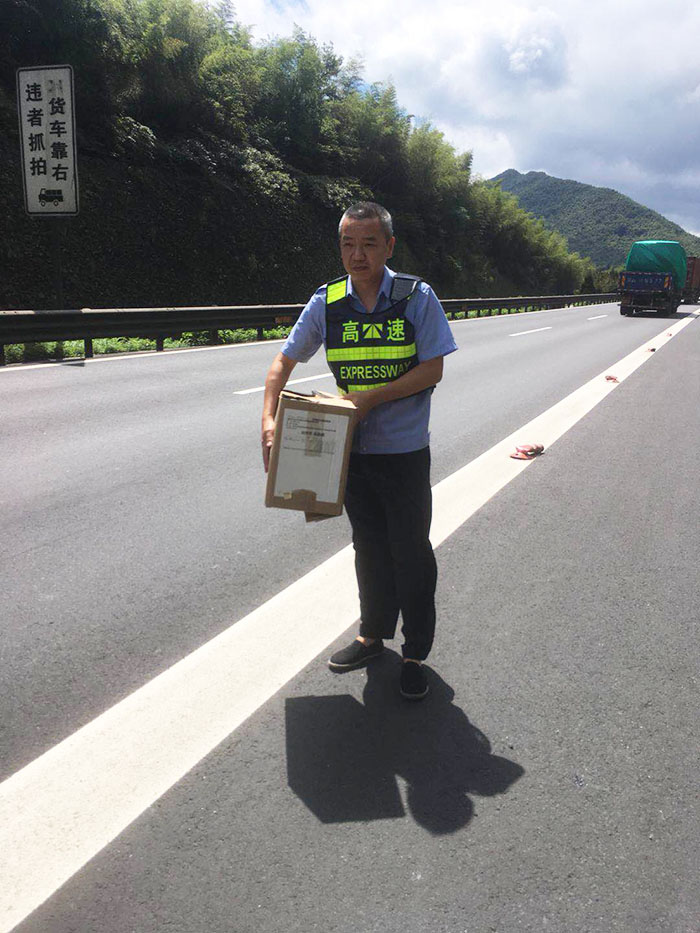 圖為執(zhí)勤隊員搬走掉落在高速車道上的快件 “可是如何歸還快件呢?快遞小哥再來取,還是寄回?” 執(zhí)勤隊員與物流公司負(fù)責(zé)人商量著。由于隧道所地處特殊位置,讓快遞小哥來隧道所領(lǐng)取肯定不方便,大家便提出將快件帶回臨海,再聯(lián)系順豐公司直接將快件寄給收件人。然而因紙箱掉落地面受過摩擦,使得快遞單破損且上面字跡變得模糊,一時無法確定相應(yīng)收貨人聯(lián)系方式。 “沒有上面的信息,物流公司怎么在堆積如山的快件中查詢到這份快件的信息呢?”執(zhí)勤隊員有點犯難了,他們告知物流公司物件重量,掉落地段,掉落的大致時間,并描述快件的外觀等依稀模糊的可辨特征,一次次不厭其煩的與物流公司溝通,終于根據(jù)模糊不清的外包裝相關(guān)信息確認(rèn)了收件人的聯(lián)系方式。 物流公司在收到寄出快件的運(yùn)單號時向執(zhí)勤隊員連聲道謝:“這快件里面是汽車配件,很多是不容易配齊的專有型號,多虧了執(zhí)勤隊拾得并歸還包裹,要不然丟失客戶單子賠錢挨訓(xùn)是小,影響公司名譽(yù)就麻煩了。”隊長叮囑對方下次運(yùn)送快遞時一定要放好物品,并注意安全。 毛譯聆