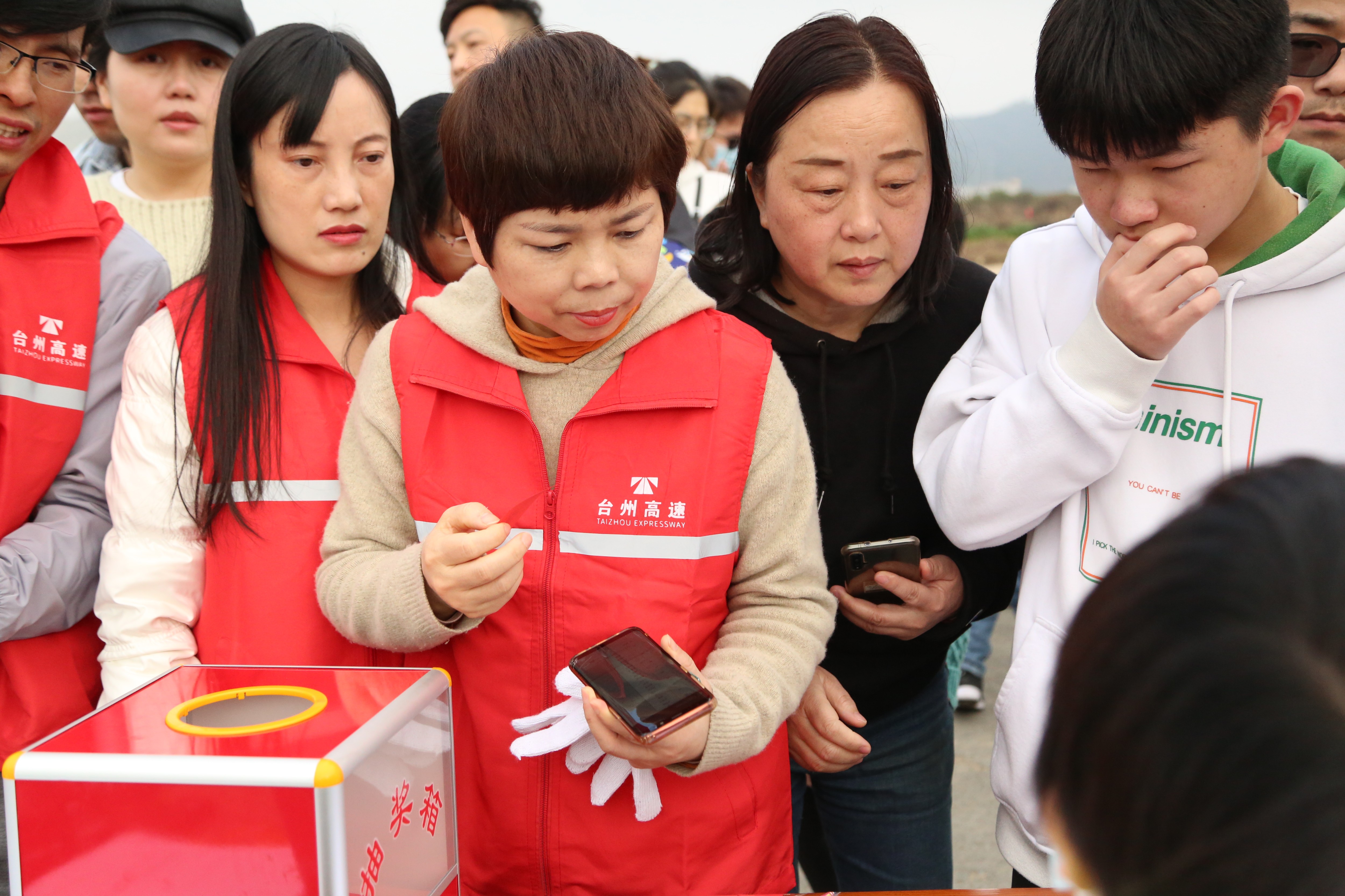 (圖為聽取活動講解和領取號碼牌)