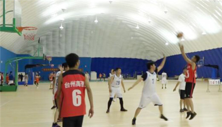 5月10日晚上,臺(tái)州體育場(chǎng)氣膜館內(nèi),不時(shí)傳來(lái)進(jìn)球后的歡呼聲。一場(chǎng)由高速集團(tuán)與基投集團(tuán)進(jìn)行的籃球友誼賽開(kāi)始了。基投集團(tuán)總經(jīng)理助理鐘一鳴作為對(duì)方主力球員親自參加比賽。
