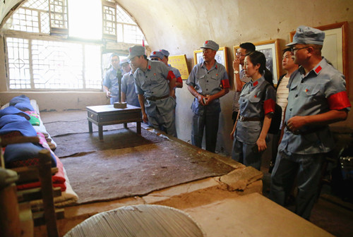 圖為黨員參觀梁家河知青點(diǎn)的窯洞