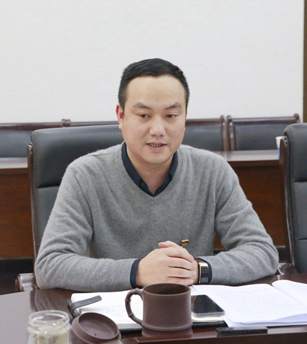 圖為黨委中心組成員羅小將分享學習體會
