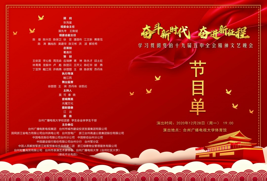 12月28日晚,學(xué)習(xí)貫徹黨的十九屆五中全會(huì)精神文藝晚會(huì)在臺(tái)州廣播電視大學(xué)體育館舉行,資產(chǎn)部副經(jīng)理林軍代表集團(tuán)公司參加演出,團(tuán)委相關(guān)人員出席晚會(huì)。