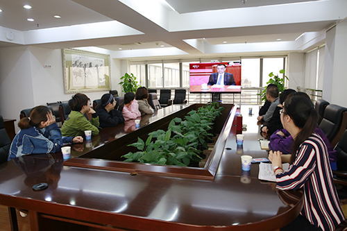 圖為行政團支部成員觀看大會直播