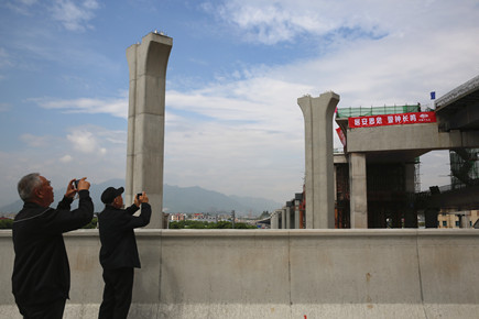 圖為部分老干部在6#立交橋上駐足拍照 老干部一行自南向北,先后來到2#隧道、7#~6#立交、8#立交施工現(xiàn)場,實地了解內(nèi)環(huán)路(黃巖段)項目建設(shè)進展。每到一個考察點,鐘彪仔細地向老干部們介紹了項目的總體概況、目前的施工進展等相關(guān)情況。一路上,老干部們邊走邊看邊議,不時舉起手機拍照,記錄下考察中難忘的一幕。 看著眼前拔地而起的高架橋,老干部們對內(nèi)環(huán)路建設(shè)的快速推進以及黃巖城市建設(shè)的發(fā)展新變化紛紛表示贊嘆,同時鼓勵全體參建人員再接再厲,抓好安全生產(chǎn),高質(zhì)量、高標(biāo)準(zhǔn)地完成建設(shè)任務(wù),為加快推進臺州新型城市化發(fā)展而努力。 張琛