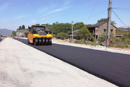 圖為黃長發射線接線段地面道路瀝青鋪設場景