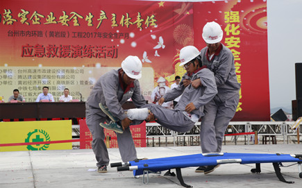 7月5日下午,根據“安全生產月”活動安排,內環路(黃巖段)四個標段的施工、監理單位分別派出代表隊,在內環北路(黃巖段)第四標段施工現場,依次開展消防、現場急救和意外窒息事故的應急救援演練。